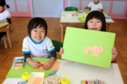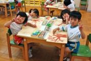 それぞれの年齢に合わせ、絵画制作や文字や数あそびやSIあそびなどを通し、集中力、自信、意欲を育てます。年少児から週に一度、本格的な体育あそびを行い、丈夫な体と心を作ります。音楽講師による音楽指導を通し、豊かな心と表現力を伸ばします。