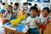 昼食の時間です。お友達と食べると自然と箸も進みます。