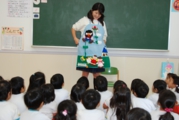 先生のお話や絵本、紙芝居を楽しみます。