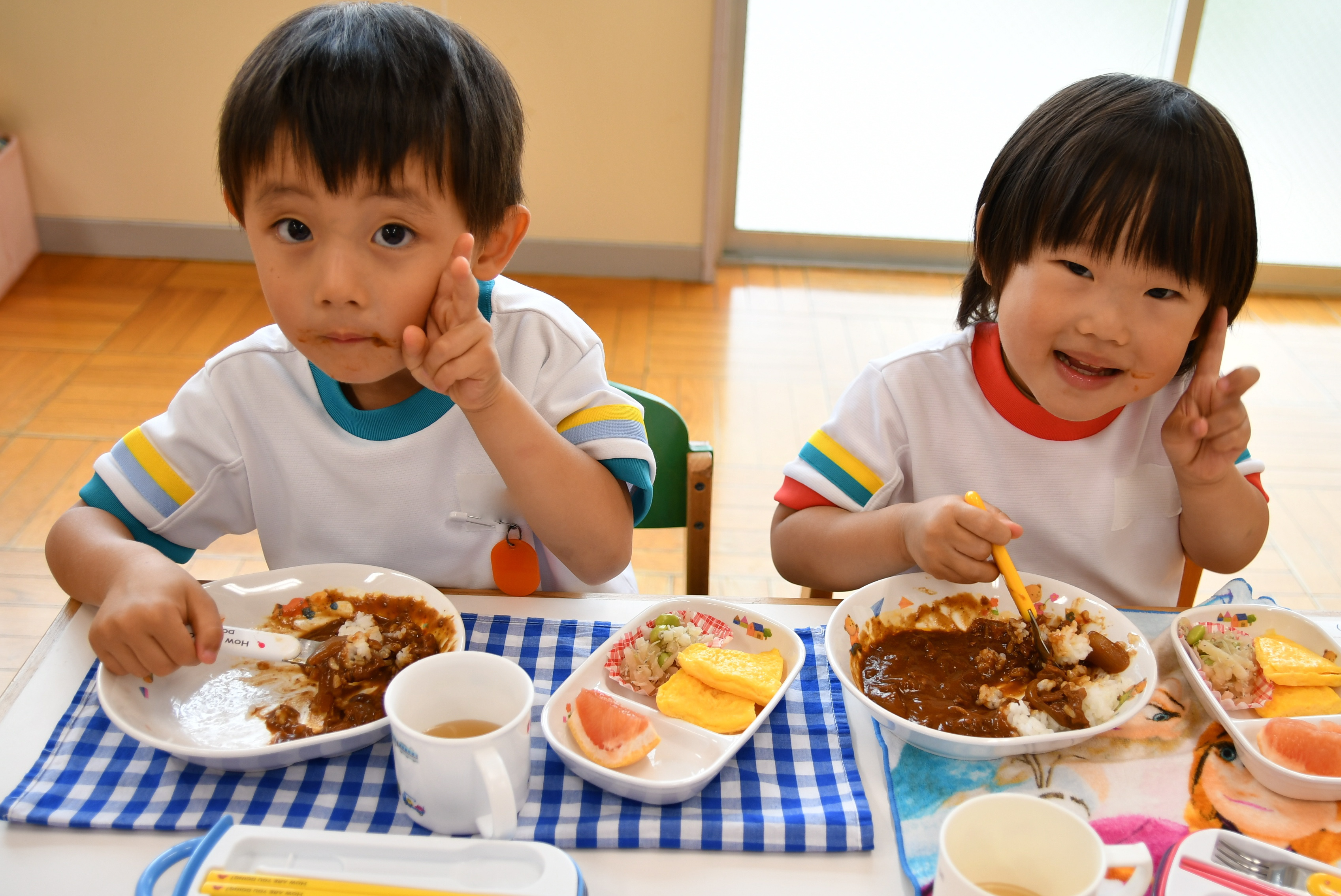 昼食の時間です。お友達と食べると自然と箸も進みます。